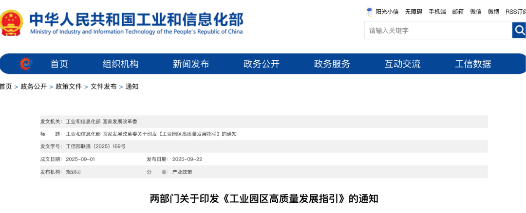 工业和信息化部 国家发展改革委关于印发《工业园区高质量发展指引》的通知